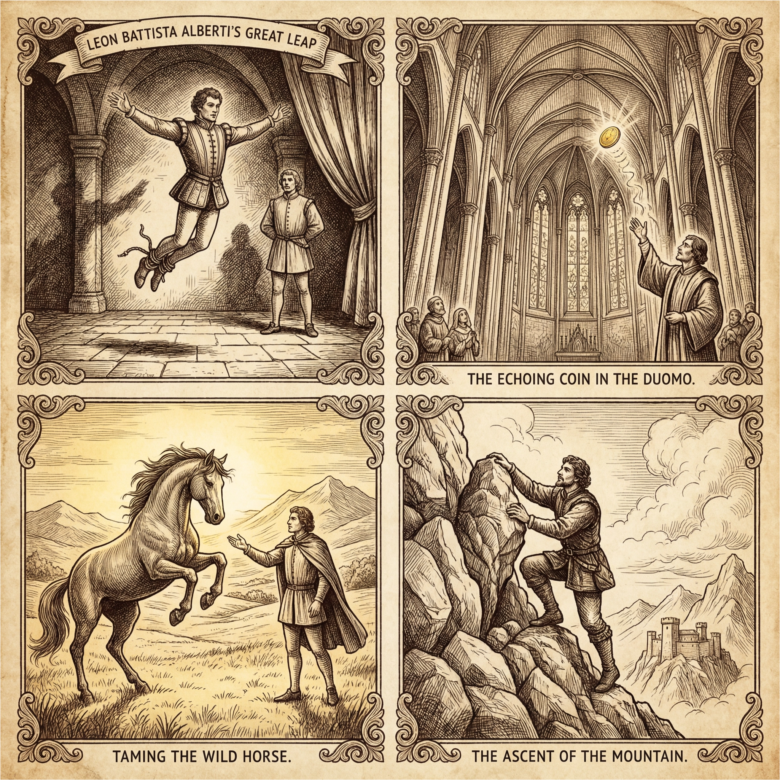 アルベルティは知の巨人であっただけでなく、自身の身体能力にも非常に自信を持っていたようです。