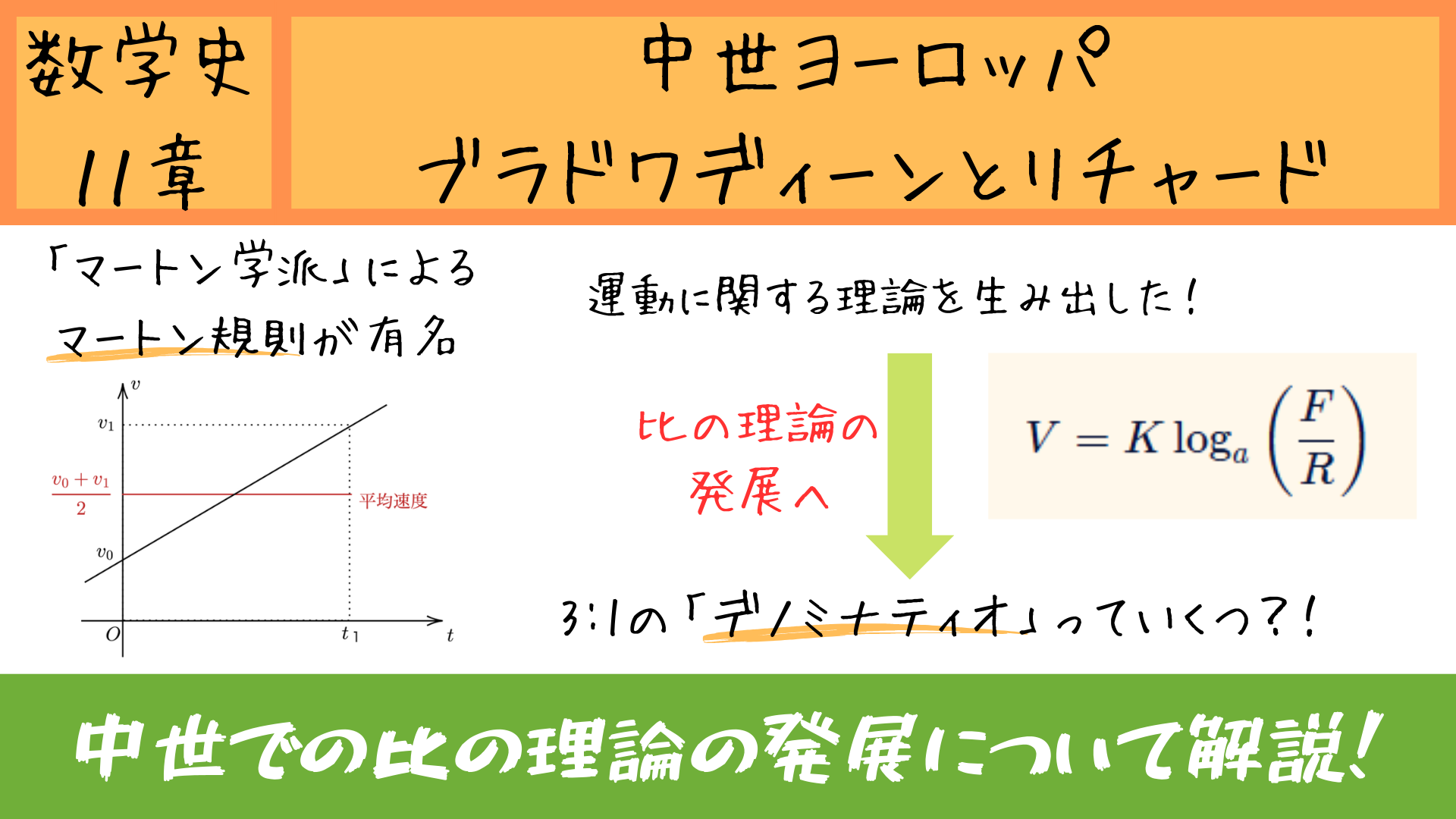 実際に運動の様子をグラフで表し始めたのは、少し後のフランスの数学者ニコル・オレームで、彼への橋渡しとなったマートン学派の数学者がブラドワディーンとリチャードだったのです。