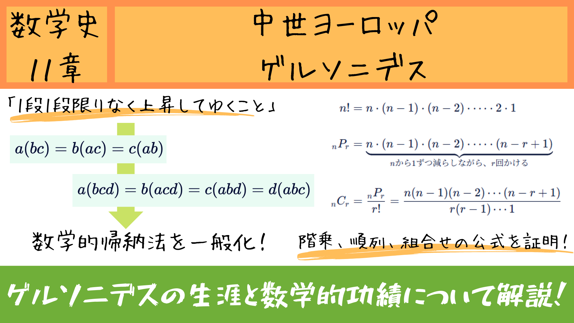 ゲルソニデスの功績:階乗! や順列 P 、組合せC の公式を証明した