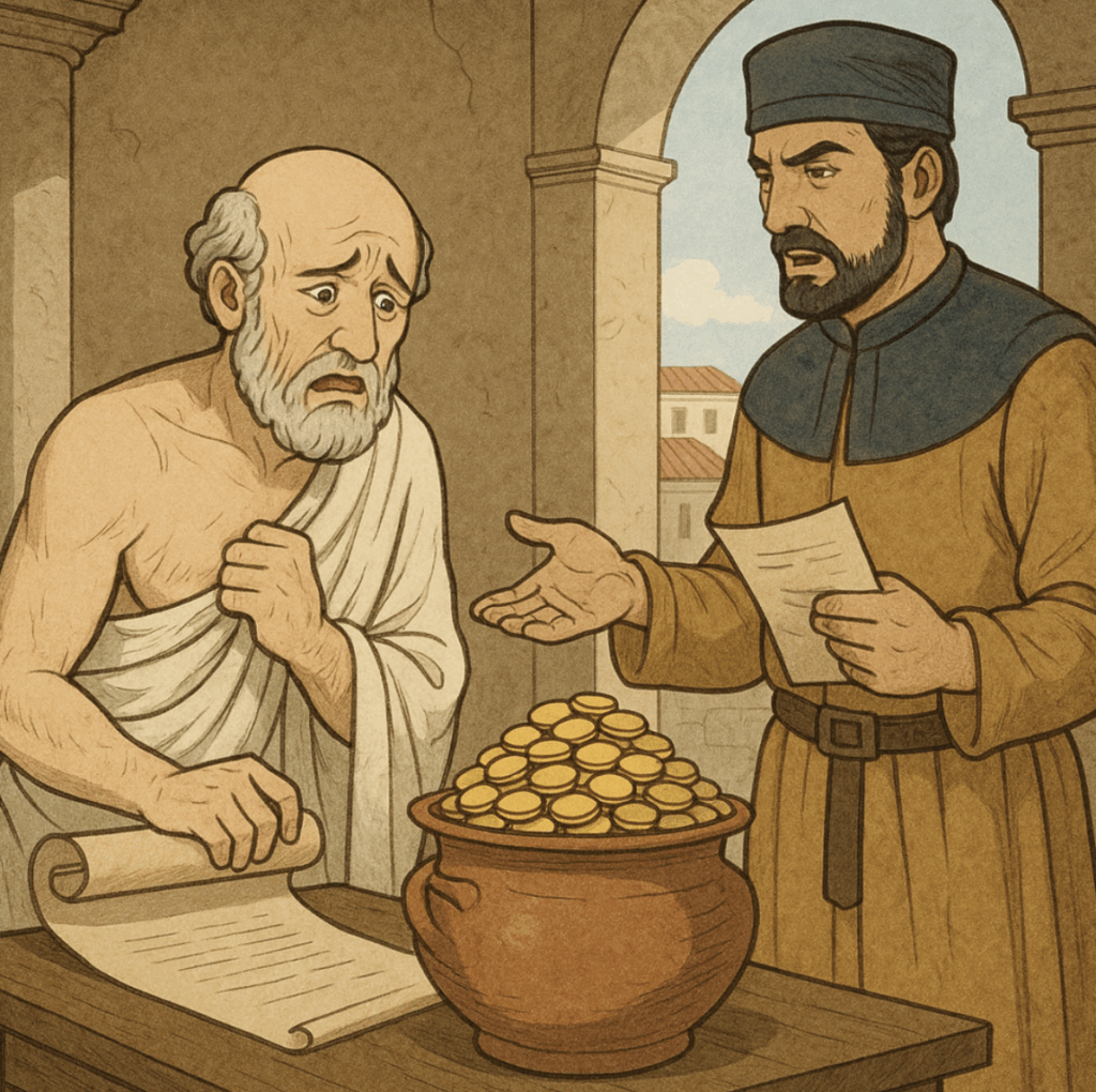 海賊に全財産奪われたことをきっかけにアテネで暮らすようになった。